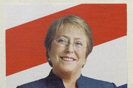 Volante con fotografía de Michelle Bachelet, con fondo blanco con franja roja.