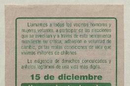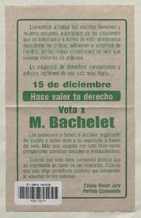 Volante de la Célula Víctor Jara del Partido Comunista, instando a la ciudadanía a participar votando por Bachelet en las elecciones.
