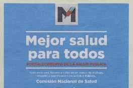 Mejor salud para todos fortalecimiento de la salud pública. [estampa] : [Chile] : Nueva Mayoría, [2013]. 1 cartel (afiche) : color ; 28 cm. .