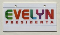 Pequeño cartel con logo de Evelyn Presidenta en colores.