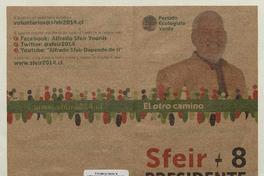 Sfeir - 8, Presidente el otro camino. [estampa] : [Chile] : Partido Ecologista Verde, [2014]. 1 hoja plegable : ilustración ; 22 x 28 cm. plegada a 22 x 14 cm. .