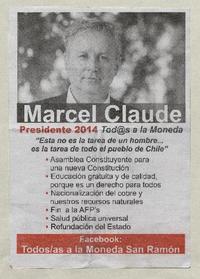 Marcel Claude Presidente 2014 tod@s a La Moneda. [estampa] : San Ramón : [Editor no identificado], [2013]. 1 cartel (afiche) : color ; 20 cm. .