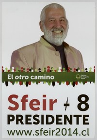 Sfeir - 8, Presidente el otro camino. [estampa] : [Chile] : Partido Ecologista Verde, [2013]. 1 cartel (afiche) : color ; 44 x 37 cm. .