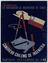 Primer congreso chileno de ingeniería [estampa] / Francisco Otta. [Chile] : [Editor no identificado], 1942. 1 cartel (afiche) : color ; 72 x 53 cm. .