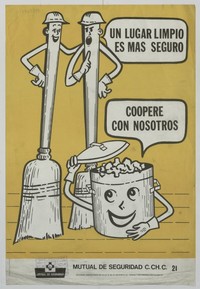 Un lugar limpio es más seguro [estampa] / Mutual de Seguridad. [Santiago, Chile] : Mutual de Seguridad, [1994]. 1 cartel (afiche) : color ; 53 x 36,5 cm. .