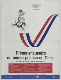Afiche sobre el Primer encuentro de humor político en Chile a realizare en el mes de julio, se ignora el año preciso.