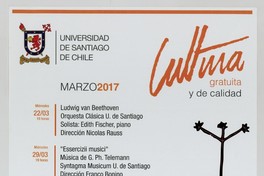 Cultura, gratuita y calidad [estampa] / Universidad de Santiago de Chile. [Santiago, Chile] : La Universidad, 2017. 1 cartel (afiche) : color ; 48 x 35 cm. .