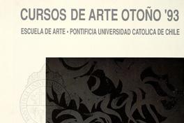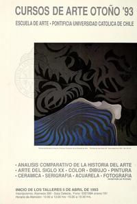 Afiche publicitario de los cursos de arte que se realizaron en la Universidad Católica durante el año 1993, entre algunas temáticas se encuentran: Arte del siglo XX, color, fotografía, etc.
