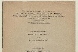[Programa de teatro] [estampa]. [Santiago, Chile] : [Editor no identificado], 1962. 1 díptico : 23 x 15 cm. .