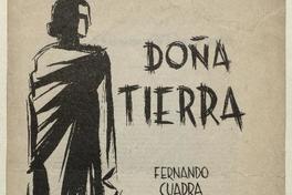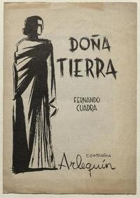 Díptico con el programa de la obra representada por la Compañía Arlequín, "Doña tierra" de Fernando Cuadra Pinto.