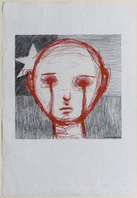 [Dibujo de persona con ojos sangrando] [estampa] Andrea Vásquez.