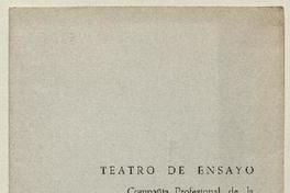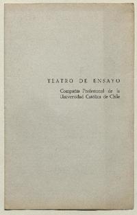 Díptico con el programa de la obra representada por el Teatro de Ensayo de la Compañía Profesional de la Universidad Católica de Chile, "Versos de ciego" de Luis A. Heiremans.