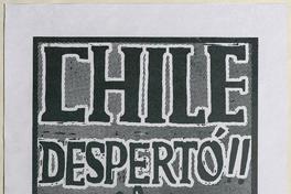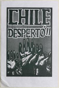 Chile despertó [estampa] : Claudio Romo Torres. Chile : [Editor no identificado], 2019 . (Chile : Taller Falucho 41). 1 cartel (afiche) : foto serigrafía ; 55 x 38 cm. .