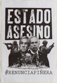 Estado asesino #renunciapiñera. [estampa] / Chile : [Editor no identificado], 2019. 1 cartel (afiche) : blanco y negro ; 48 x 33 cm. .