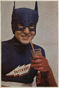Contiene 1 afiche con un hombre emulando un superhéroe, en su polera la palabra "Fortesán", el otro afiche es un juego "La toma del morro".