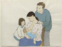Ilustración para afiche de Comisión Nacional de Lactancia Materna, Ministerio de Salud, la vida es lo primero.