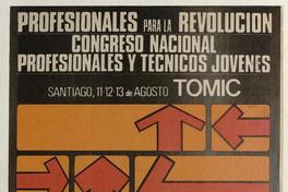 Profesionales para la revolución [estampa] / Daniel Gleiser. [Santiago, Chile] : [Editor no identificado], [196-?]. 1 cartel (afiche) : color ; 55 x 38,5 cm. .