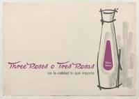 Three Roses o Tres Rosas es la calidad lo que importa / [estampa] : Daniel Gleiser. [Santiago, Chile] : [Editor no identificado], [197-?] (Santiago, Chile : Impresos Alguero S.A.). 1 cartel (afiche) : color ; 38 x 55 cm. .