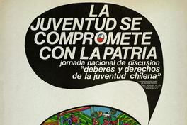 La juventud se compromete con la patria [estampa] : Chile : [Editor no identificado], [197-?]. 1 cartel (afiche) : color ; 109 x 75,5 cm. .
