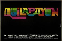 Quilapayun [estampa] : Chile : [Editor no identificado], [197-?]. 1 cartel (afiche) : color ; 78 x 111 cm. .