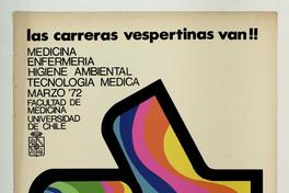 Las carreras vespertinas van! [estampa] : Chile : [Editor no identificado], 1972. 1 cartel (afiche) : 77,5 x 55 cm. .