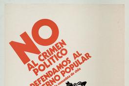 No al crimen político defendamos al gobierno popular. [estampa] / Chile : [Editor no identificado], [197-?]. 1 cartel (afiche) : color ; 69 x 49 cm. .