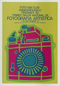 Primer Salón Nacional de Fotografía Artística [estampa] : Chile : [Editor no identificado], 1972. 1 cartel (afiche) : color ; 76,5 x 52,5 cm. .