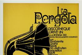 La Pérgola discoteque [estampa] : Chile : [Editor no identificado], [198-?]. 1 cartel (afiche) : color ; 77 x 53 cm. .