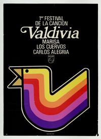 1er. Festival de la canción Valdivia [estampa] : Chile : [Editor no identificado], 1972. 1 cartel (afiche) : color ; 76 x 54,5 cm. .