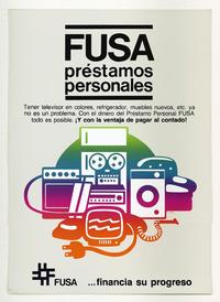 Fusa préstamos personales [estampa] : Chile : [Editor no identificado], [197-?]. 1 cartel (afiche) : color ; 76 x 54,5 cm. .