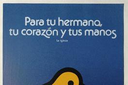 Para tu hermano, tu corazón y tus manos la iglesia. [estampa] / Chile : [Editor no identificado], [197-?]. 1 cartel (afiche) : color ; 55 x 38 cm. .