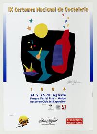 Certamen nacional de coctelería [estampa] / Marcelo Maturana. Santiago, Chile : [Editor no identificado], 1994. 1 cartel (afiche) : color ; 51,5 x 36 cm. .