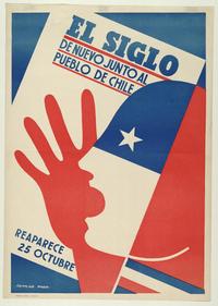 El Siglo de nuevo junto al pueblo de Chile / [estampa] : Camilo Mori. Chile : Talleres Gráficos "Lautaro", [194-?]. 1 cartel (afiche) : color ; 72 x 50,5 cm. .