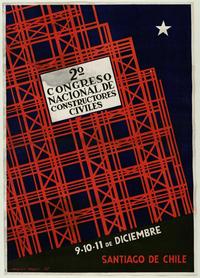 2º Congreso Nacional de Constructores Civiles [estampa] : Camilo Mori. Santiago, Chile : [Editorial no identificada], 1955. 1 afiche : color ; 54 x 76 cm. .