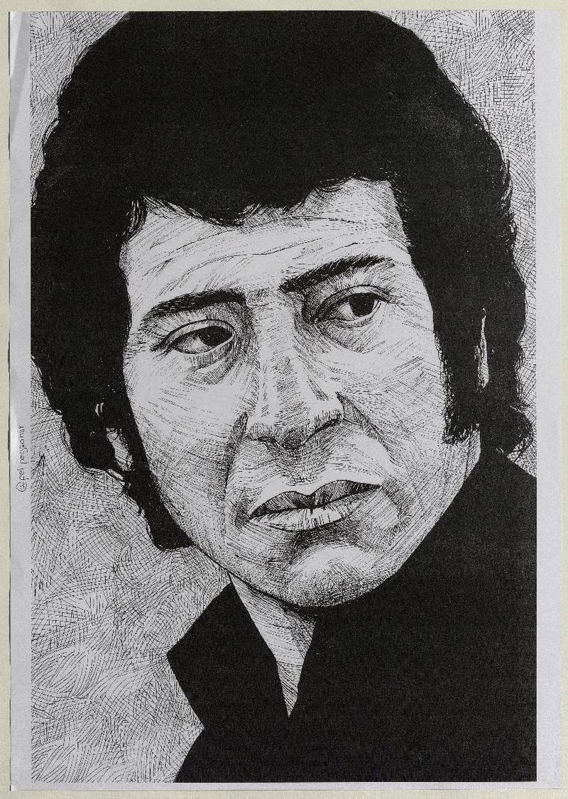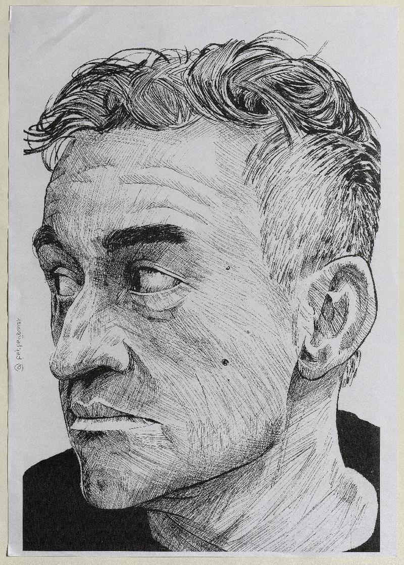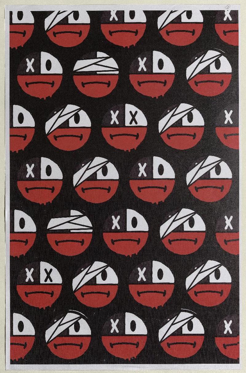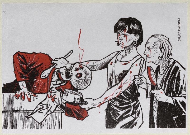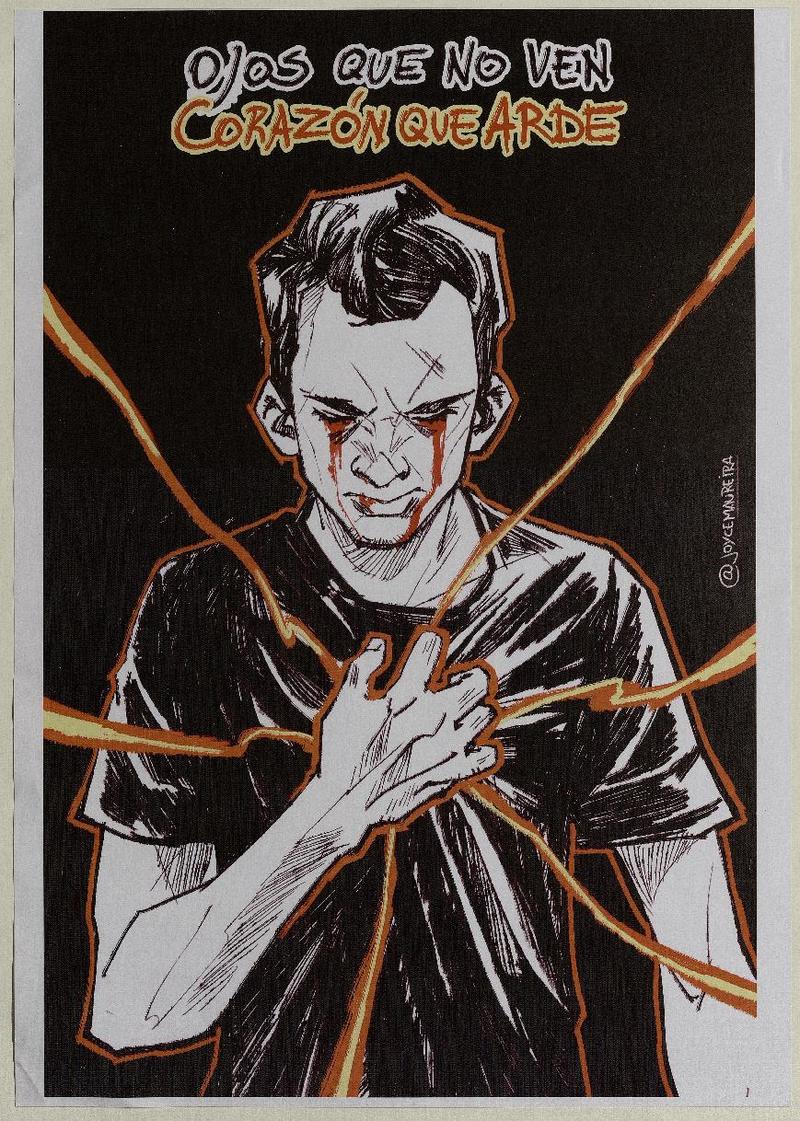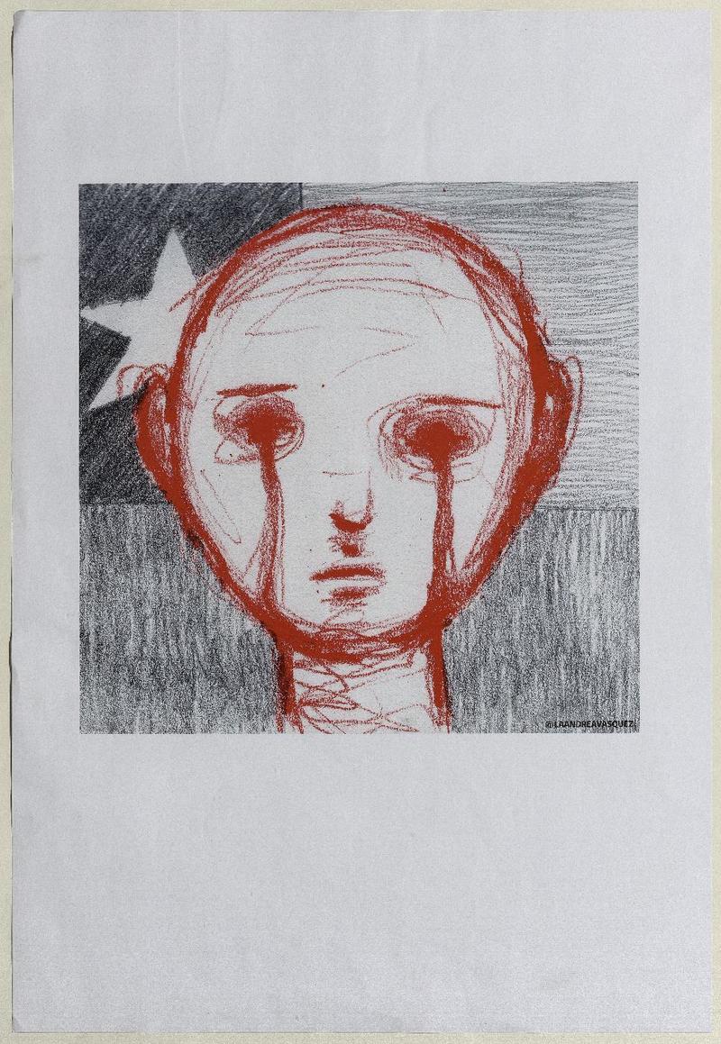 [Dibujo de persona con ojos sangrando] [estampa] Andrea Vásquez.