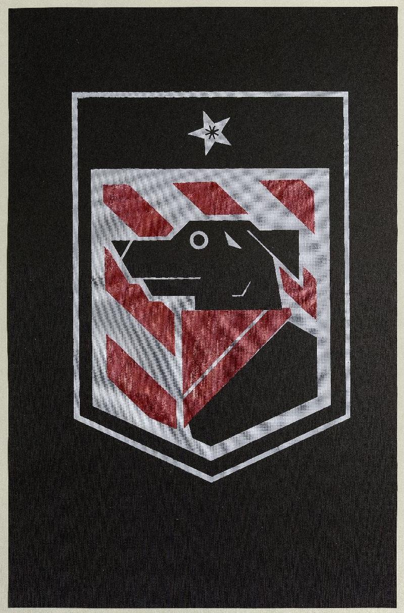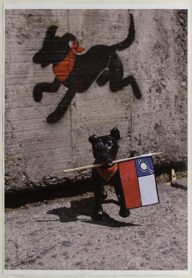 [Perro con bandera en el hocico] [estampa] Tamara Reyes Palacios.
