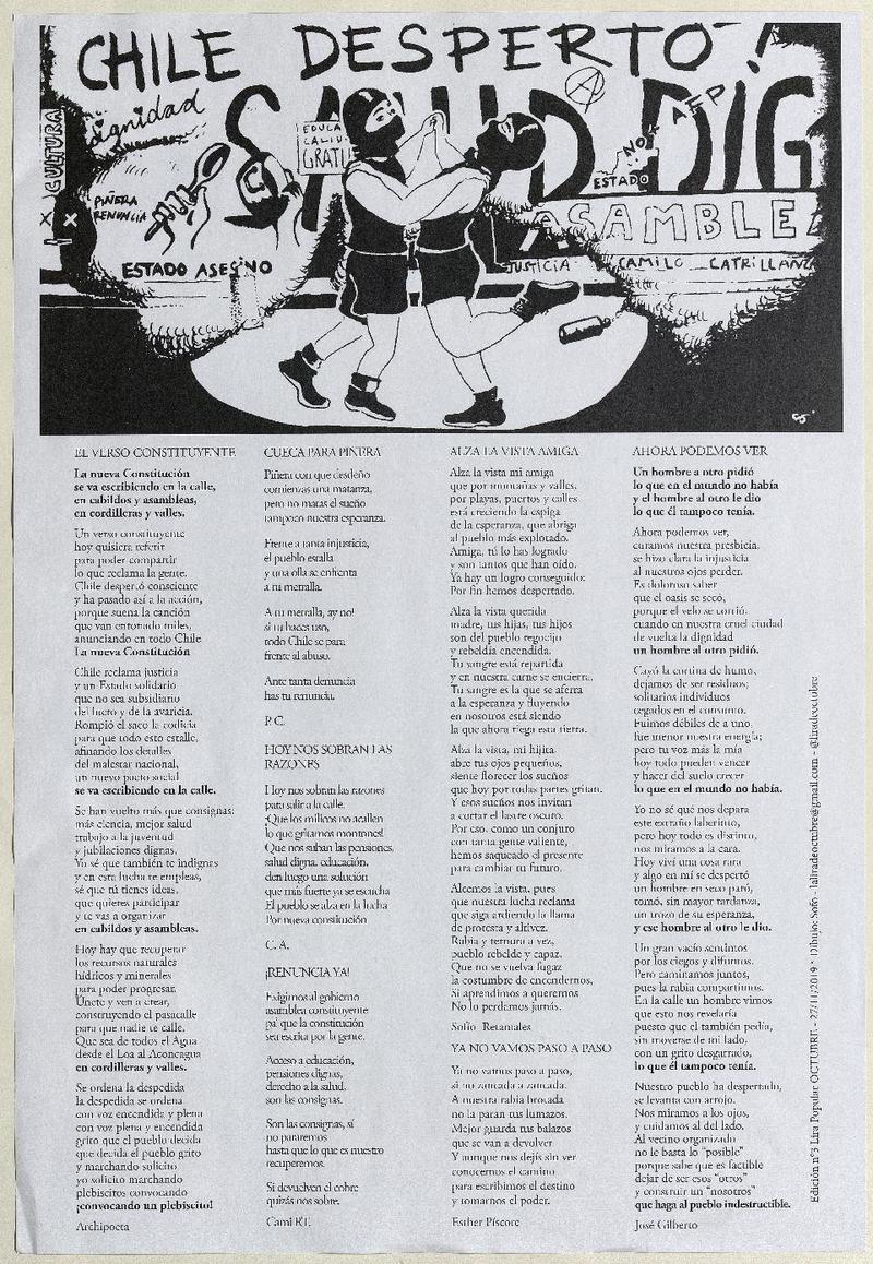 Esta colección reúne afiches realizados en el marco de las movilizaciones sociales que tuvieron lugar en Chile a partir del 19 de octubre de 2019. Impresos en diversos soportes y técnicas, fueron donados a la Biblioteca Nacional por colectivos artísticos y autores independientes de ciudades como Santiago, Valparaíso y Concepción.
