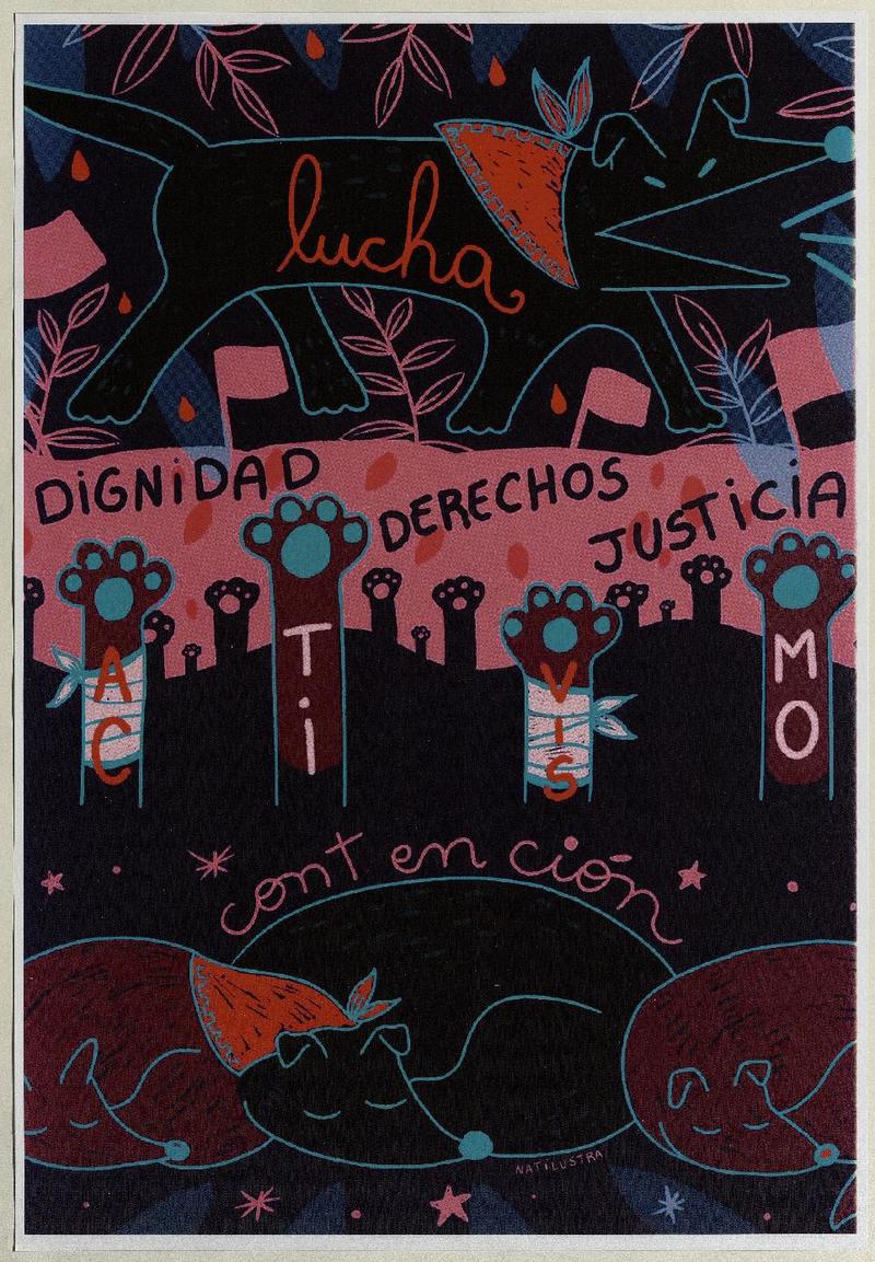 Dignidad, derechos, justicia lucha, activismo, contención. [estampa]
