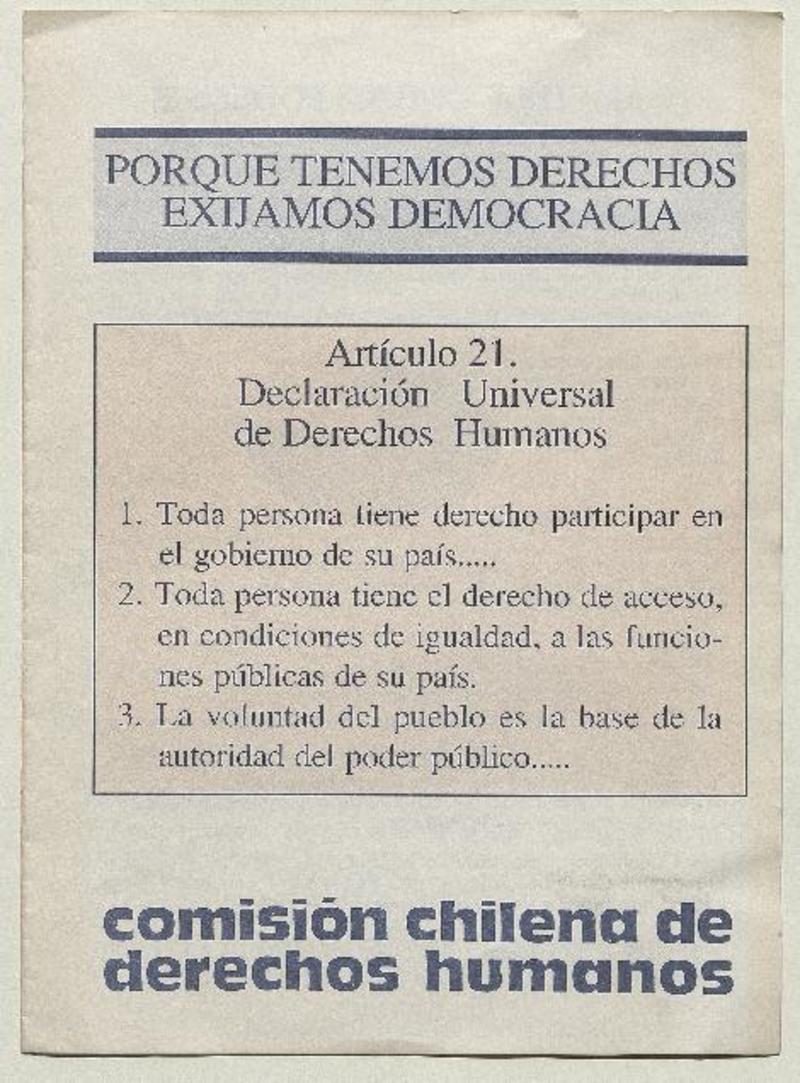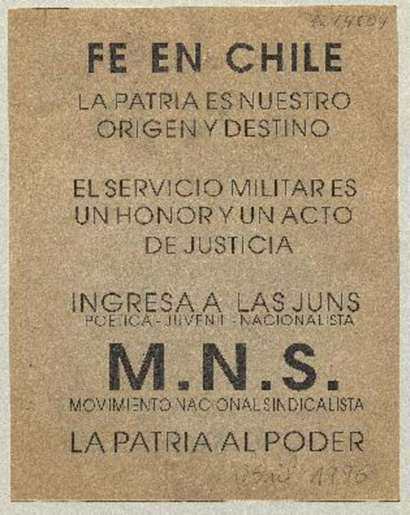 Esta colección reúne más de 400 panfletos producidos en Chile entre los años 70 y 90. Se incluyen en ella documentos realizados por agrupaciones y partidos políticos de diversa tendencia. Destaca además por su amplia variedad de estilos gráficos, que van desde la impresión artesanal al uso de caricaturas e impresos en colores, y por la trascendencia de los hechos históricos que registran.