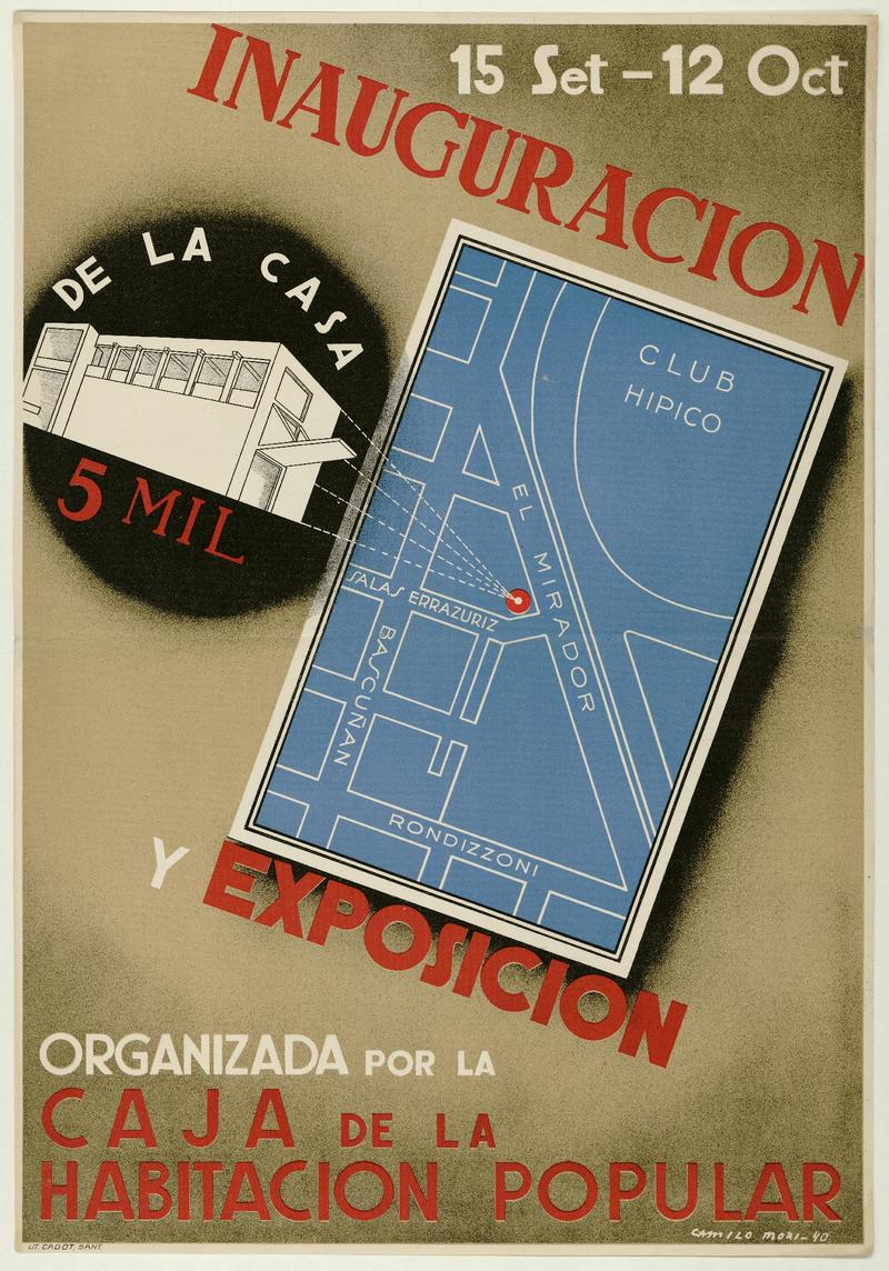 Inauguración y exposición de la casa 5 mil organizada por la Caja de la Habitación Popular [estampa] : Camilo Mori.