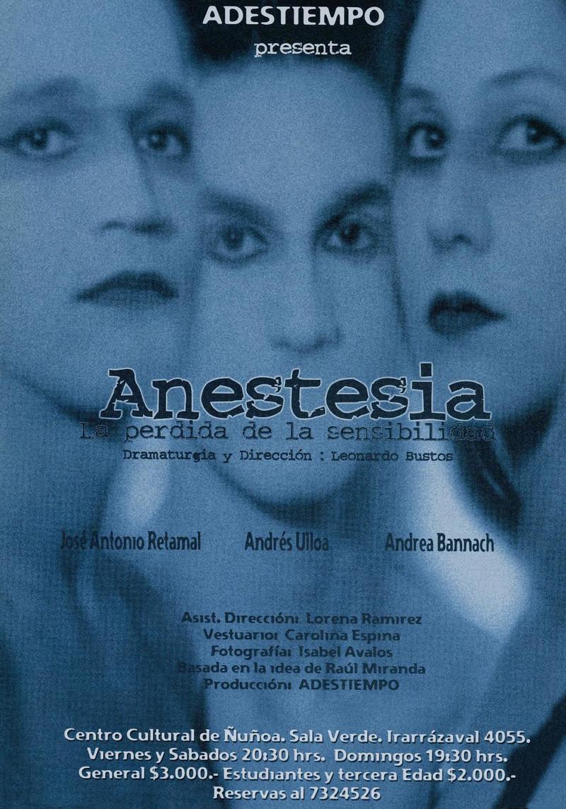 Anestesia la perdida de la sensibilidad [estampa] : dramaturgia y dirección: Leonardo Bustos.