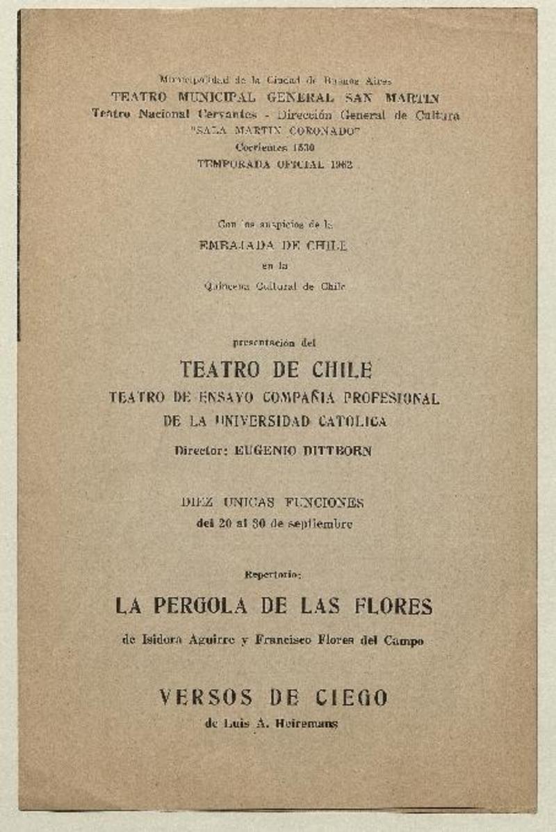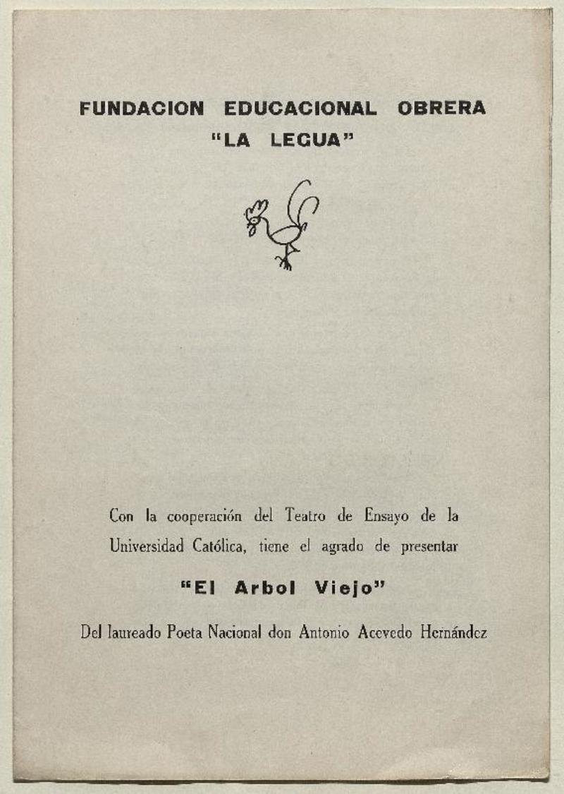 Colección que reúne afiches y programas de teatro, desde publicaciones de los años 60 realizadas por instituciones como el Teatro Experimental de la Universidad de Chile y el Teatro de Ensayo de la Universidad Católica, a piezas contemporáneos producidas entre los 1990 y 2000.