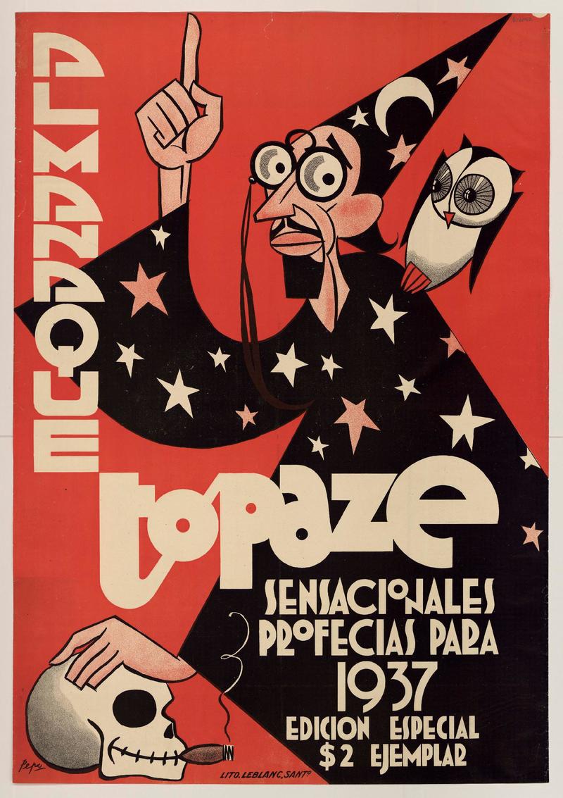 Almanaque Topaze sensacionales profecías para 1937 edición especial $2 ejemplar [estampa] : René Ríos Boettiger ; seudónimo: Pepo.