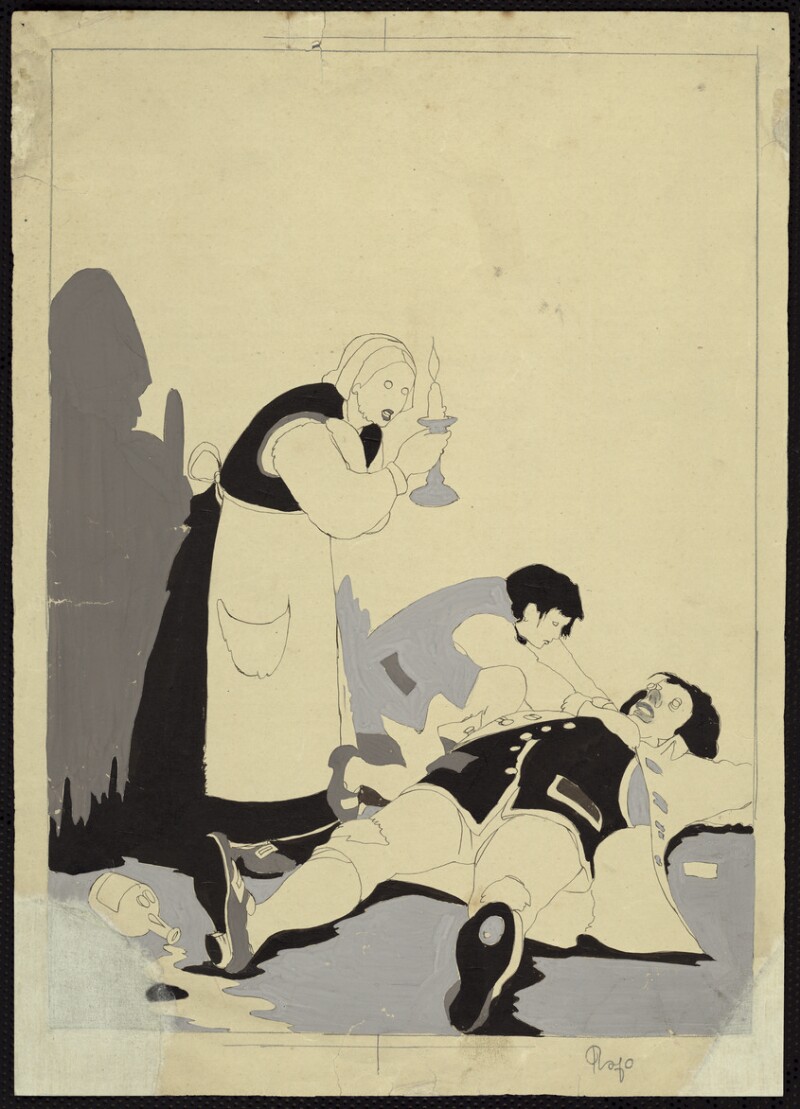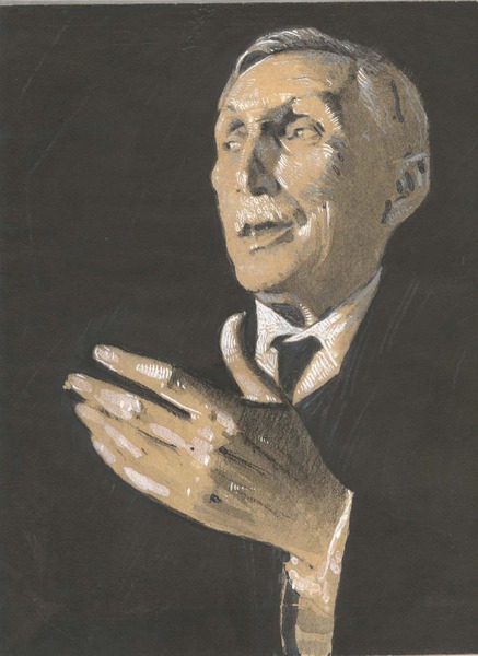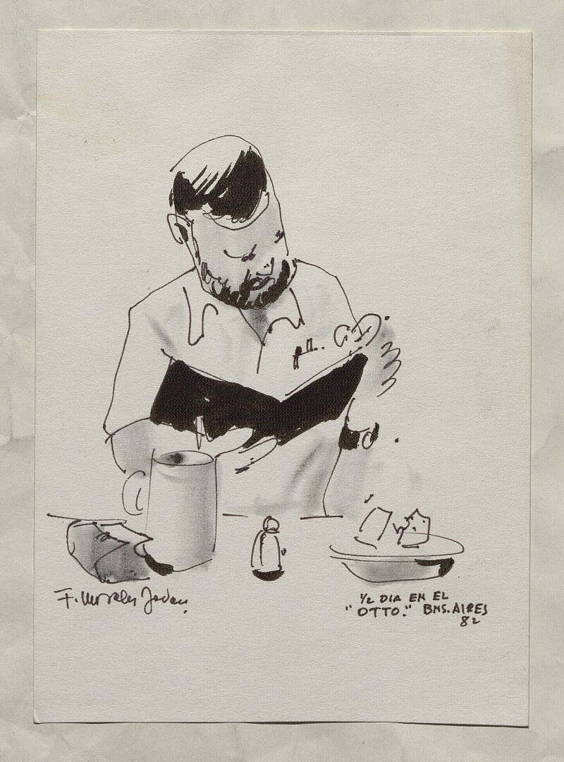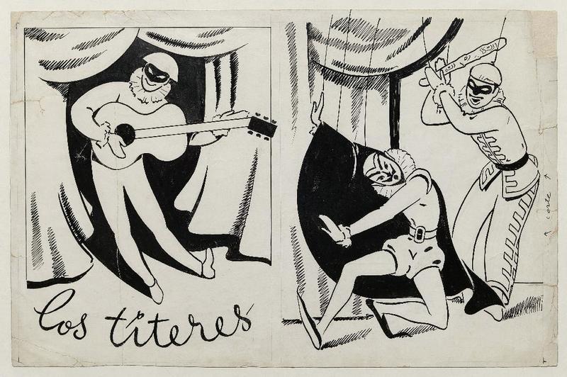 [Bocetos basados en la vida y obra de Joaquín Edwards Bello] [original de arte] Felipe Muhr.