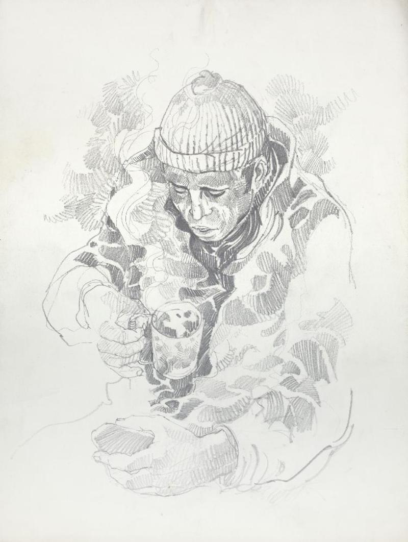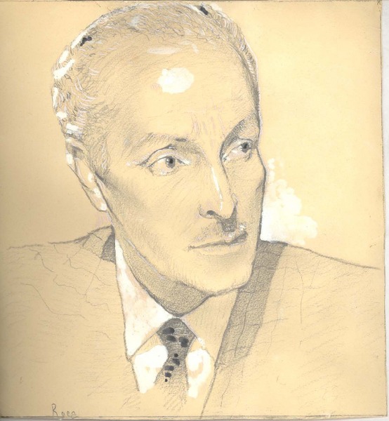 Roberto Parada, pensando en Neruda [original de arte] Francisco Huneeus Salas ; seudónimo: Roca.