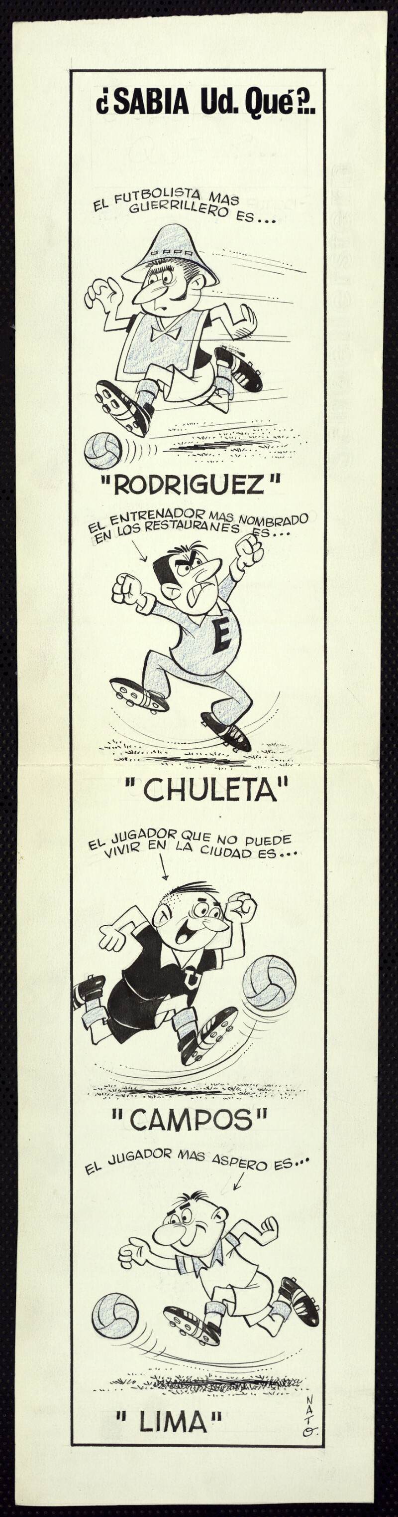 [Dibujo humor deportivo] [original de arte] : Renato Andrade ; seudónimo: Nato.