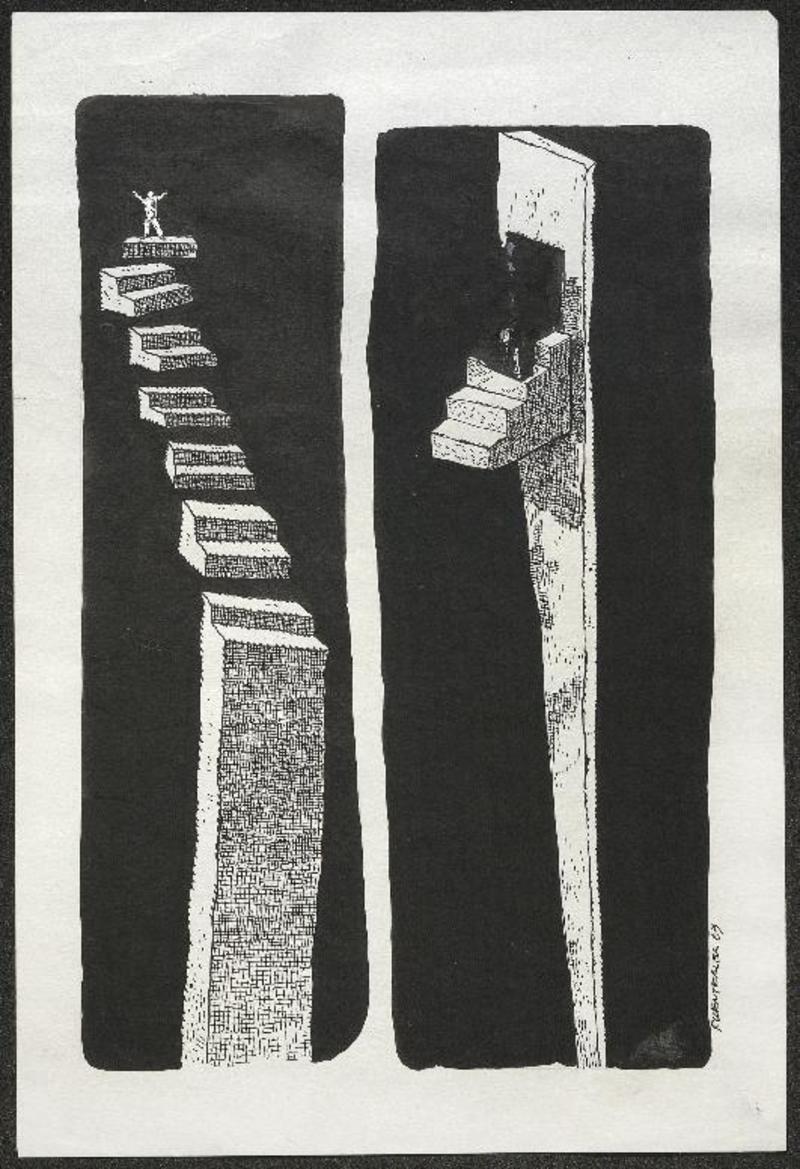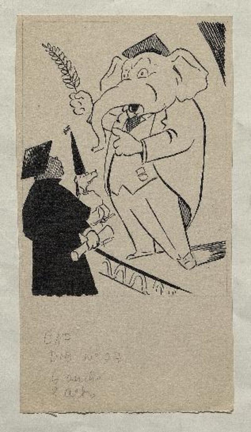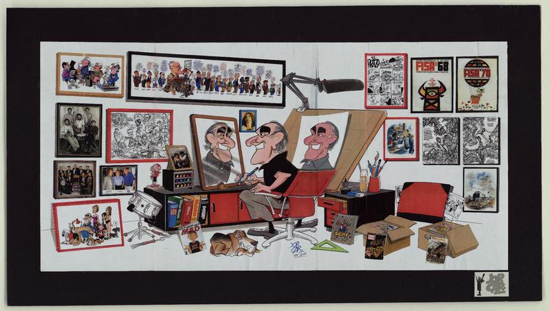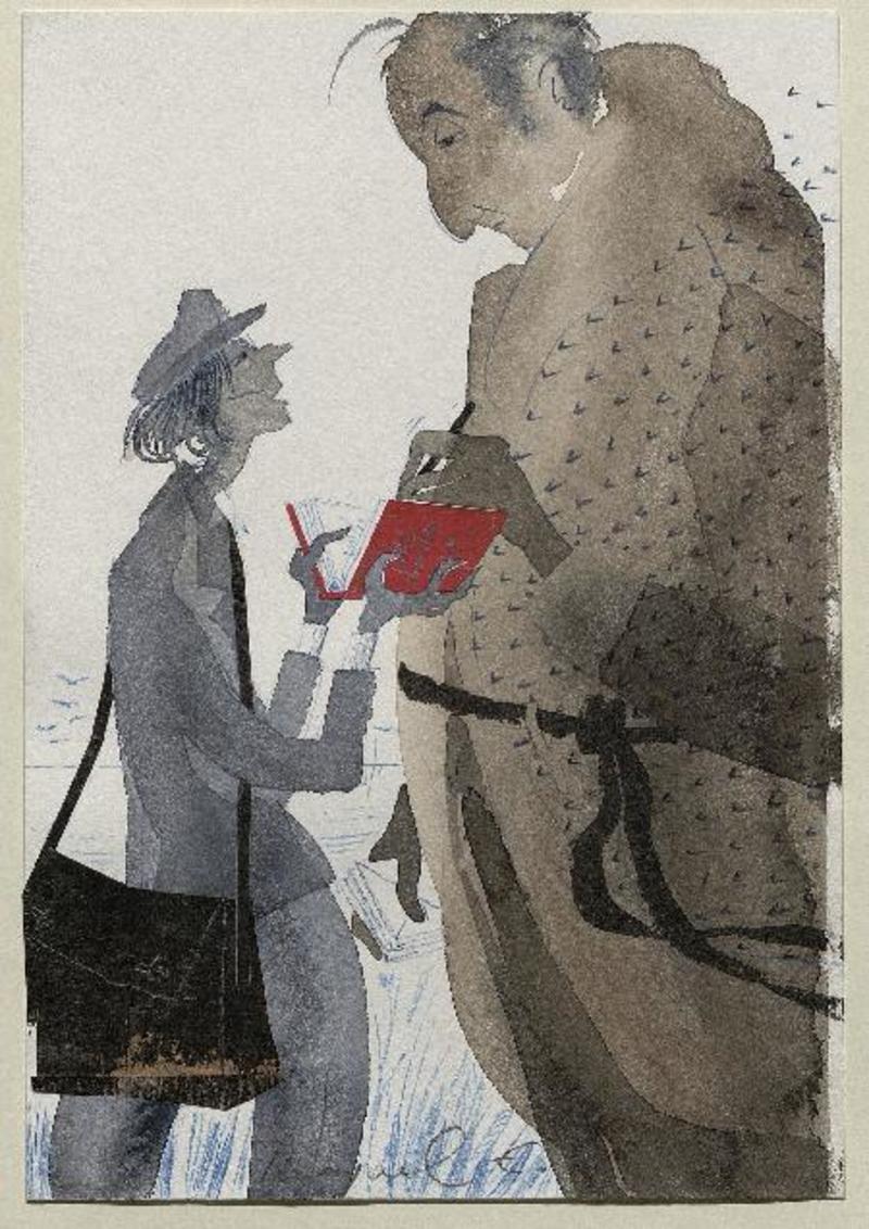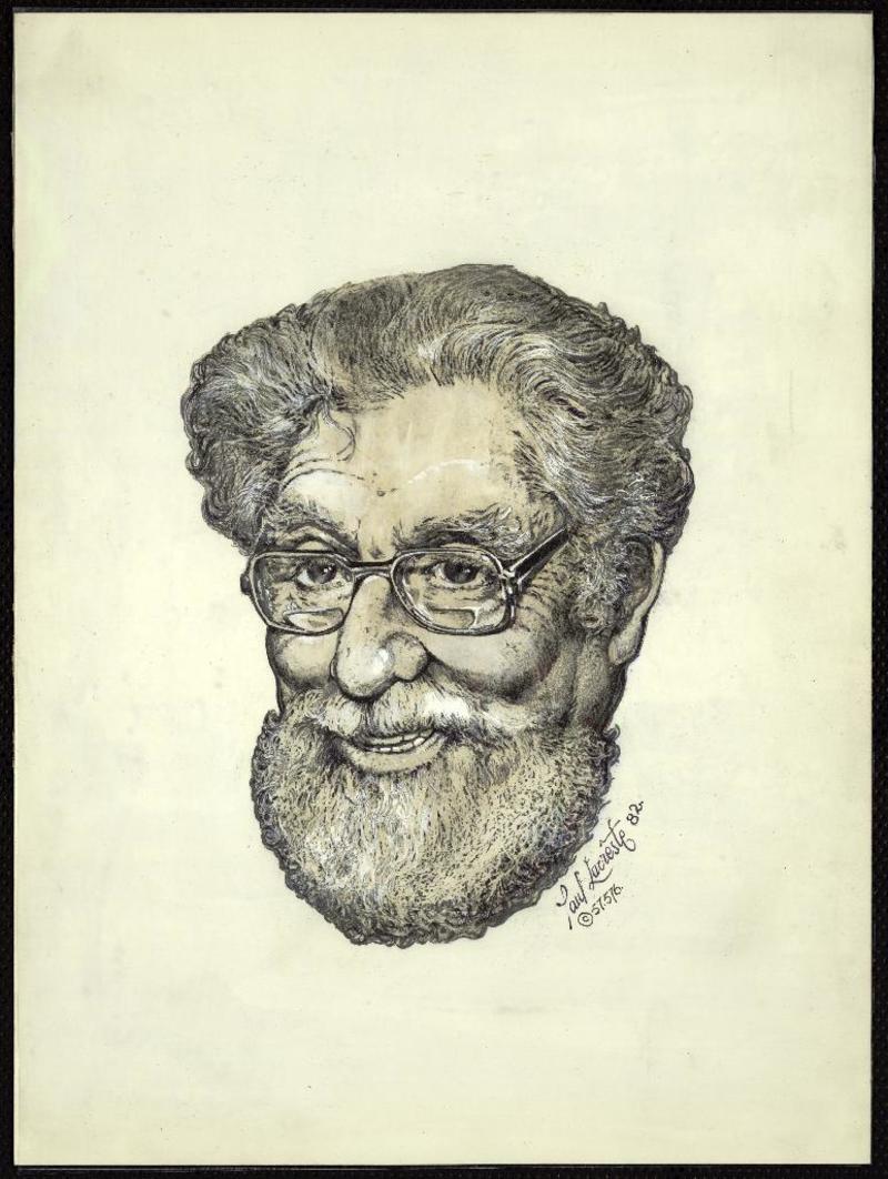 [Caricaturas de Premios Nacionales de Literatura] [original de arte] Omar Larraín Verdugo.