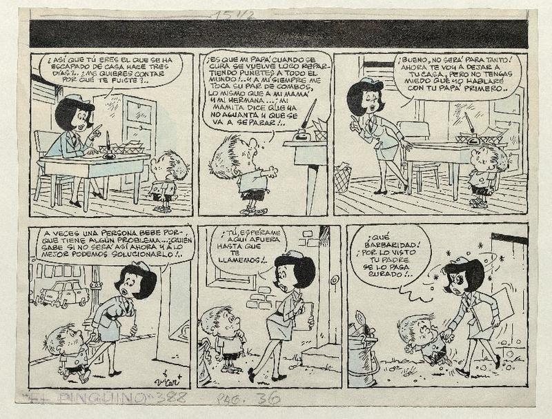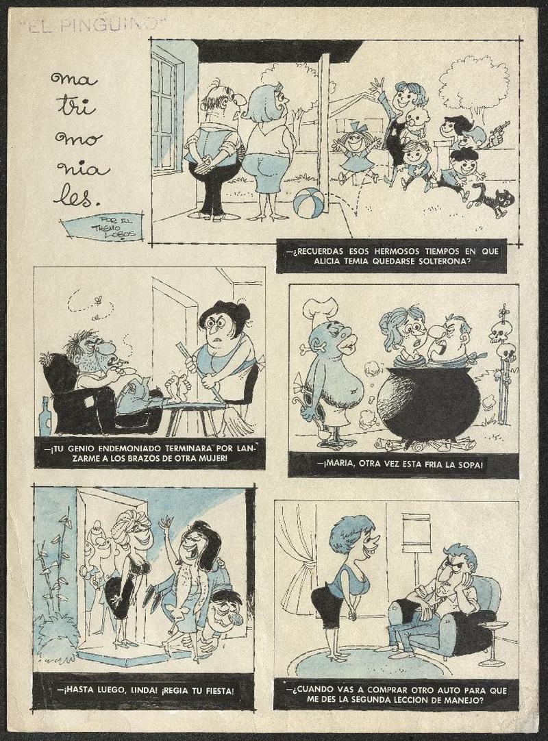 [Páginas humor El Pingüino] [original de arte] Víctor Arriagada Ríos ; seudónimo: Vicar.