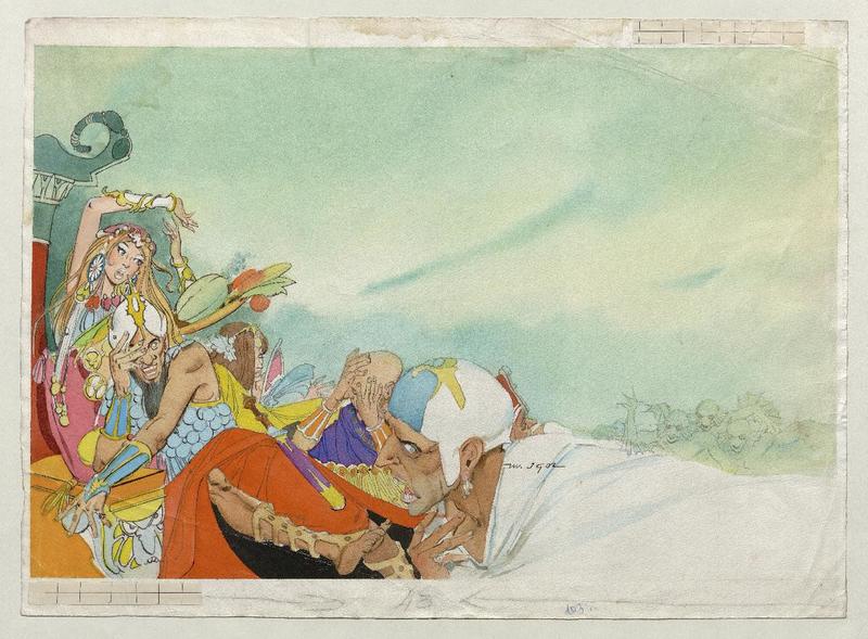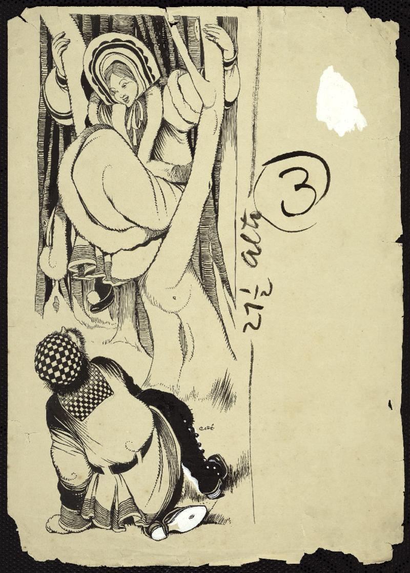 [Dibujo La reina Mora. El Peneca 1396] [original de arte] : Mario Silva Ossa ; seudónimo: Coré.
