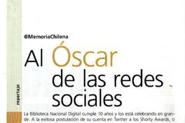 @MemoriaChilena al Oscar de las redes sociales [artículo] / Pamela Elgueda PuntoNet (Revista : Santiago, Chile)-- N°164 (abril, 2013) p. 30-33 .